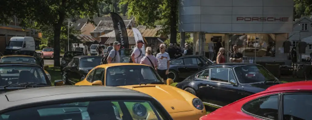 The Saturday programme centres on the street parade: 400 Porsches moving through Gothenburg led by a vintage 911 police car, followed by a rally along Swedish country roads to Tjolöholm Castle on the coast. The castle, built in 1904 in English Tudor style, provides lunch in the historic barn before the return to the city for the evening gala dinner. The Friday concours d'élégance at the Porsche Arena – a 13,850-square-metre space set up as an exhibition and event venue – runs alongside club displays and social events.
