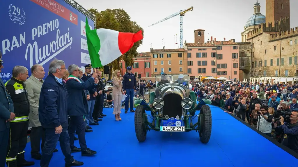 The 2026 edition marks the 36th running since Mantova Corse revived the event in 1991, three decades after the original 1954-1957 races were banned alongside the Mille Miglia. Around 300 crews from across the globe gather in Piazza Sordello for the ceremonial start, then cover approximately 1,100 kilometres through Lombardy, Emilia-Romagna, Tuscany, Marche, Umbria, and the Republic of San Marino. The route threads through Modena's Autodrome, the medieval streets of Forlì, Siena's Piazza del Campo, and the fortress atop Monte Titano before returning along the Po Valley plains that Nuvolari once conquered.