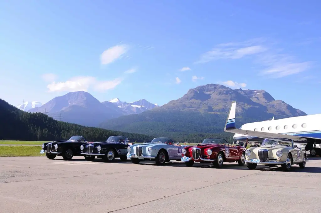 Passione Engadina combines regularity rally, concours d'élégance, and social gathering into a four-day programme designed around the pleasures of driving, eating, and conversation. The routes cross the Maloja, Julier, and Splügen passes – mountain roads that wind through landscapes dramatic enough to justify the journey even without a car – while timed challenges at Samedan airport test precision driving in a more competitive format. The pace is never rushed; stops are built into the programme specifically to encourage connection between participants.