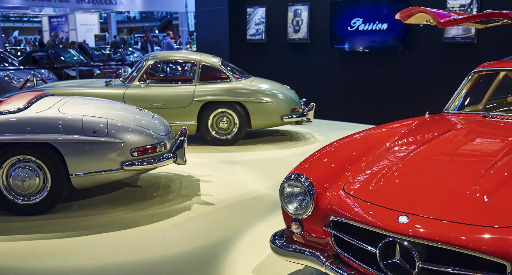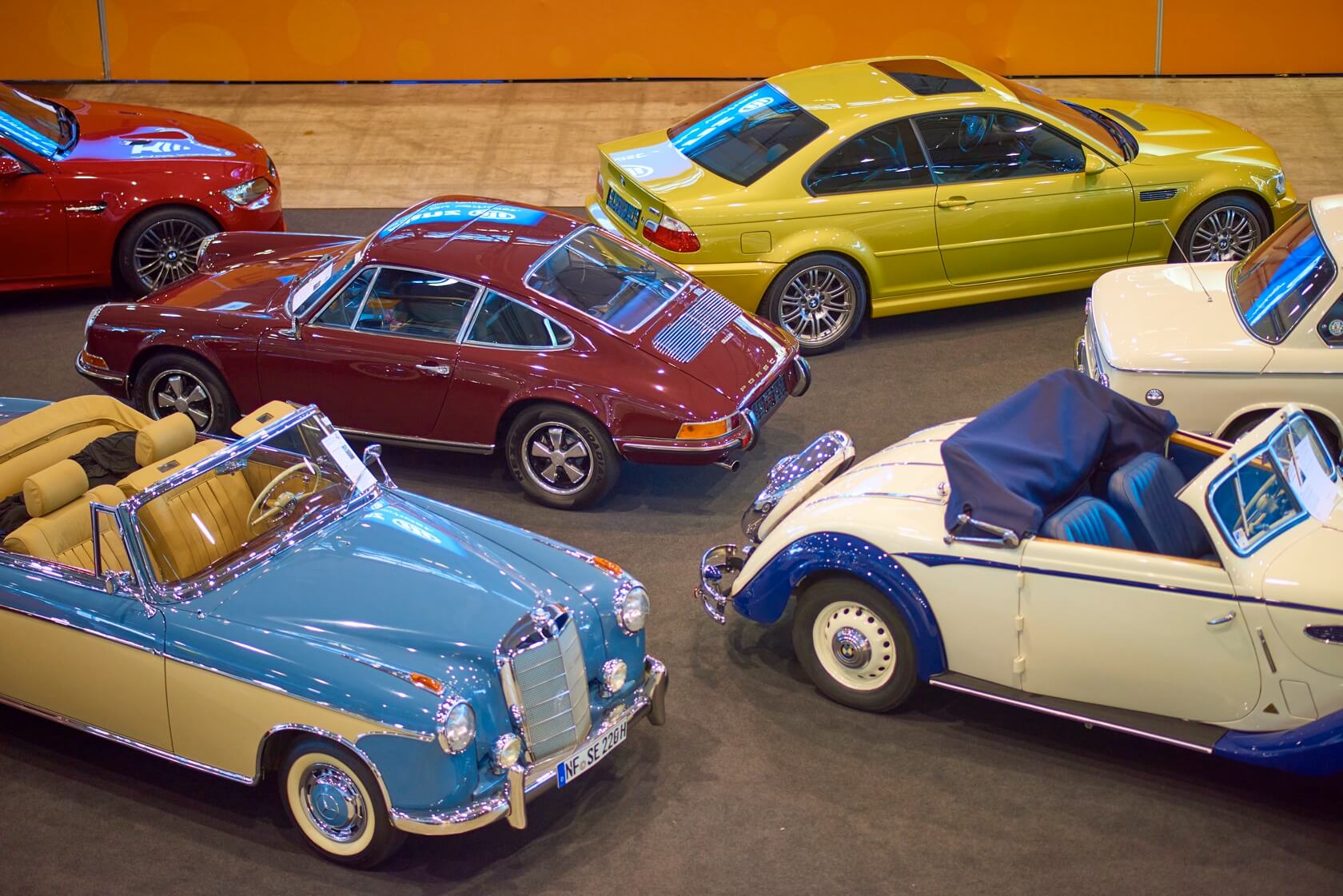 Beyond the anniversary stands, the show floor has the texture of a proper classic world. The Citroën Straße gathers compact French metal from the 1970s through 1990s. A British Lane covers UK automotive icons. The TVR Car Club Deutschland returns with a 300-square-metre display — a rare concentration of the marque on German soil. Dealers including Gallery Aaldering, Eberlein Automobile, and Rosier Classic Sterne bring serious inventory, complemented by a parts market for the restorers.