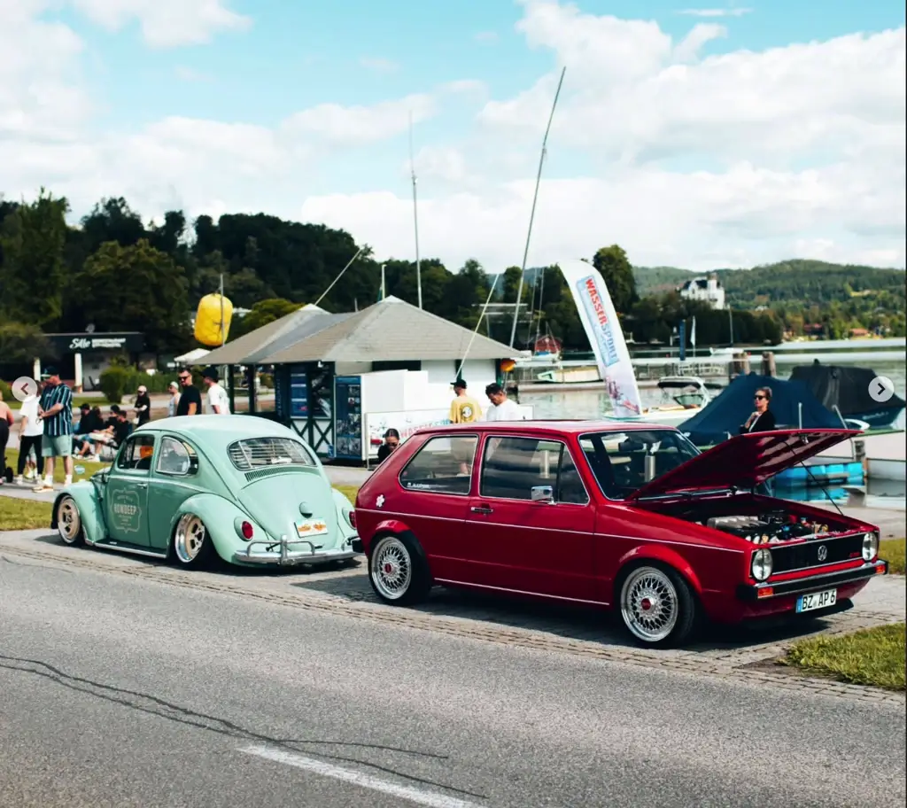 The 2026 edition runs May 12 to 17 and spreads across the familiar hotspots around the lake. Klagenfurt is the loose centre, but the action moves continuously between Velden, Reifnitz and the Mischkulnig petrol station, which has functioned as an informal show-and-shine venue long enough to qualify as an institution. The crowd covers the full width of Volkswagen Group culture: Golf-based builds from OEM-plus to widebody, air-ride Audis, Seat and Skoda representation, and a consistent contingent of restored period cars alongside the modified ones.